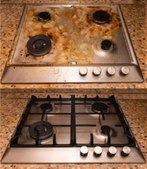 I showed her my raw hands, dry from all the scrubbing I’d been doing, “I’ve already done that, see? Are there any other options? I don’t have enough elbow grease to remove these stains and grime buildups.”